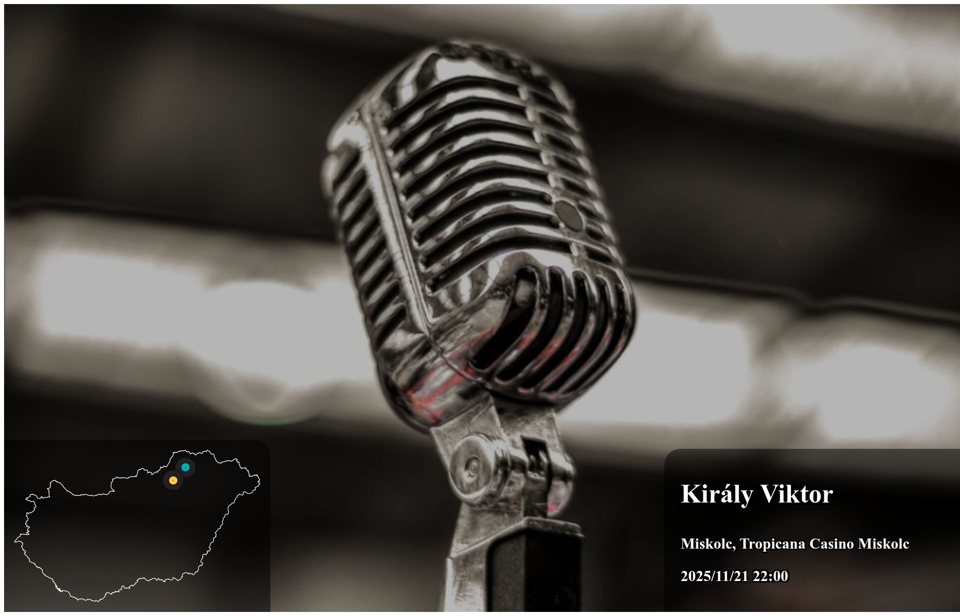 Éjfél utáni fellépések esetén a helyes keresési dátum az újonnan induló nap dátuma. Pl. Egy szombaton kezdődő klub fellépés éjfél utáni időpontja vasárnap 01:00 kor keresendő!